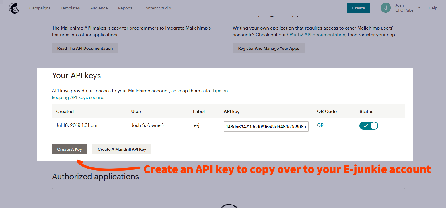 Enabling MailChimp for your E-junkie account and setting up your API Key
